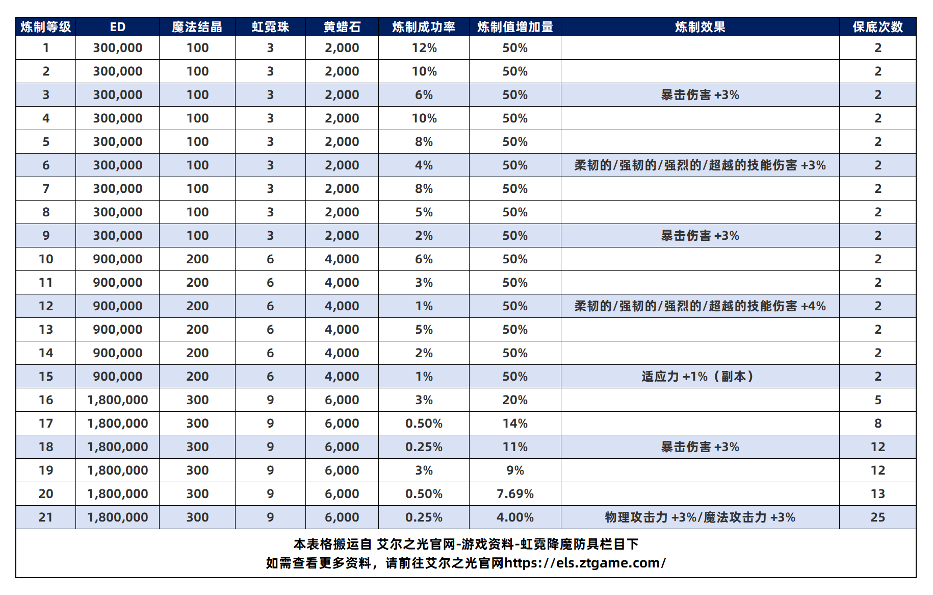 20c炼制表