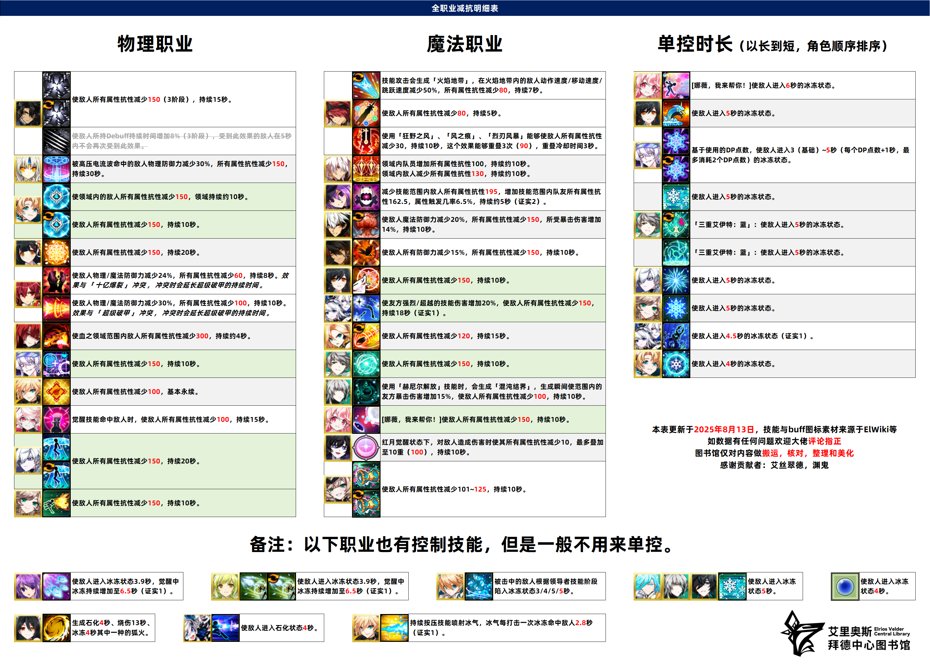详细版可前往各个角色下方查看