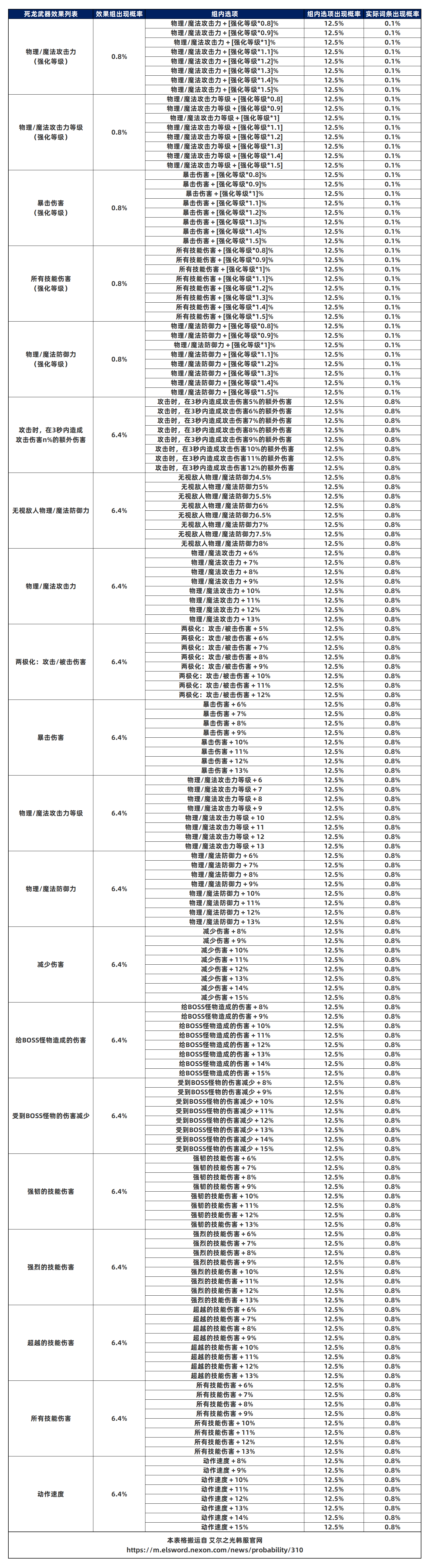 极大暴击简易表