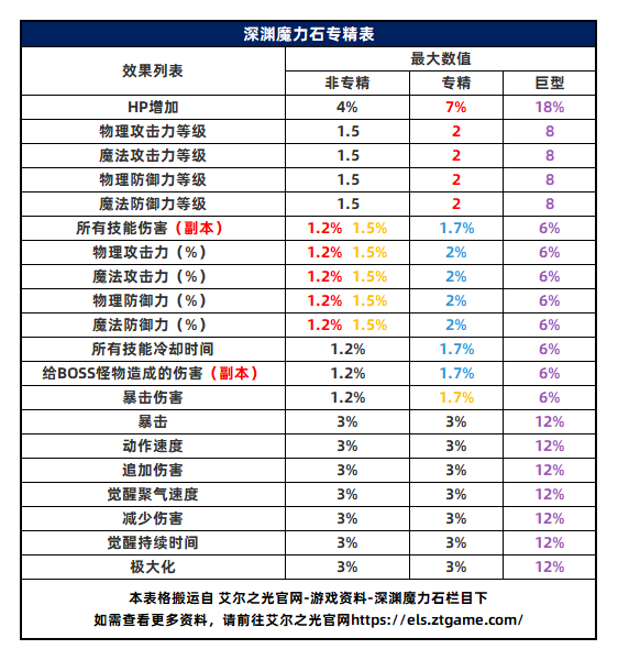 深渊魔力石专精表