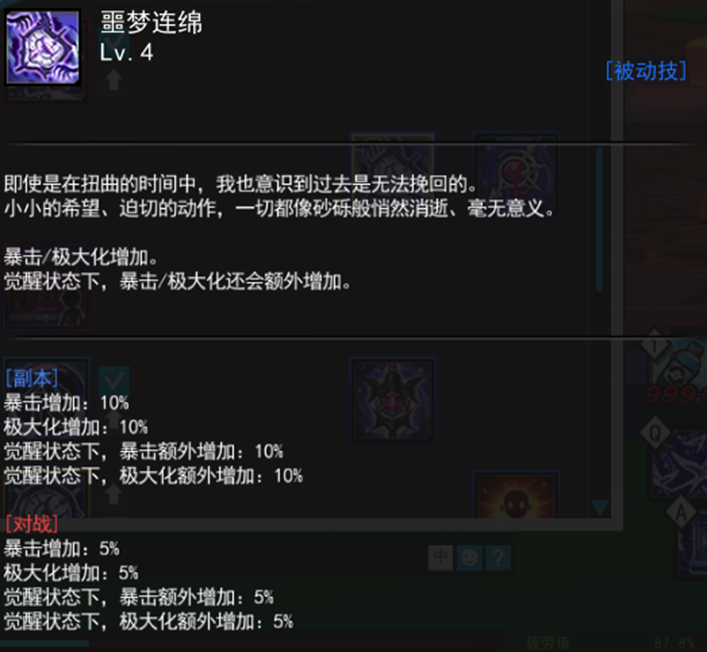 暴击、极大化增加为非递减加算(即面板暴击为80%时,实际进入副本时暴击为90%,觉醒后暴击为100%)