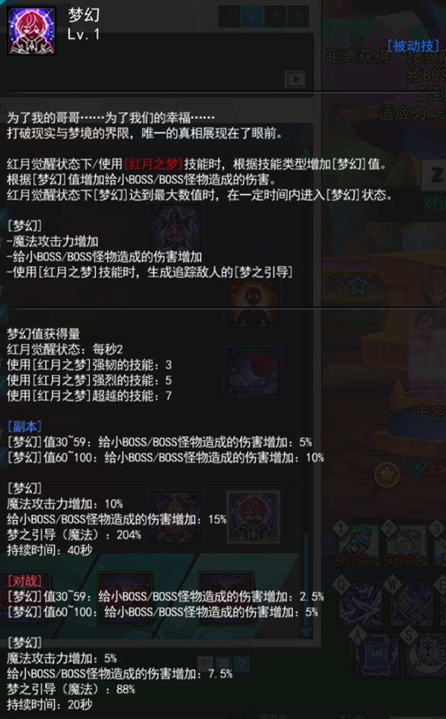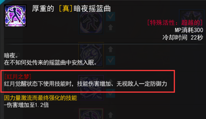 注意:1与2没有关联,即使不处于【红月觉醒】状态下,使用【红月之梦】技能依旧能够增长梦幻值。