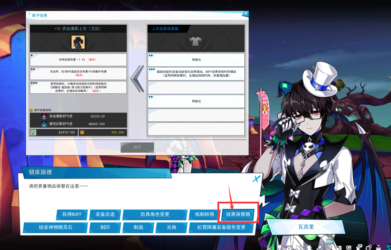 【噗老师第三次成长指南的第2课时】的虹霓降魔防具箱子,选择(绿),词条为给全队加伤的辅助效果。