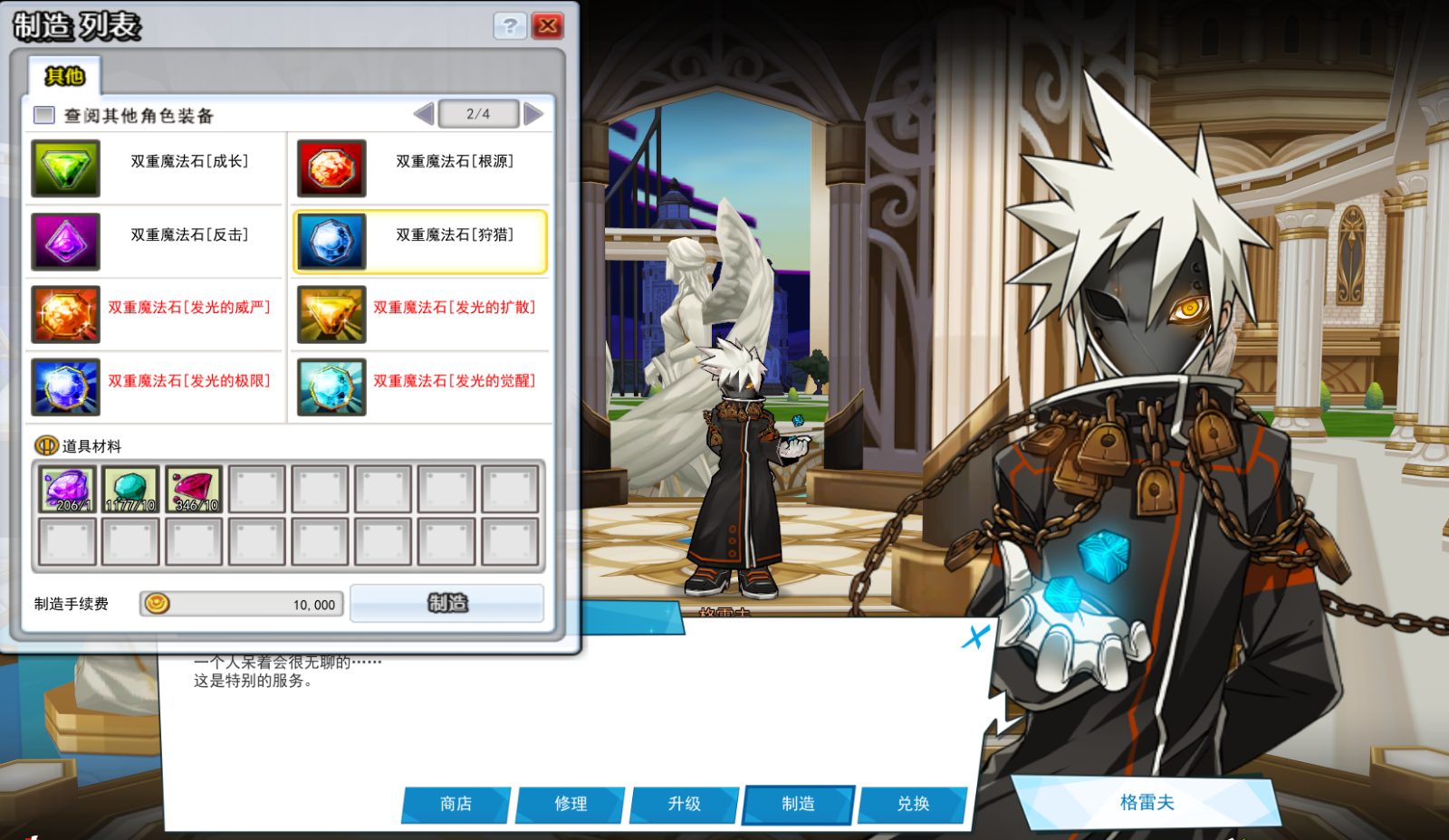 狩猎魔法石可以通过每天的特殊副本【英雄副本】累积材料, 在NPC格雷夫处制造。
