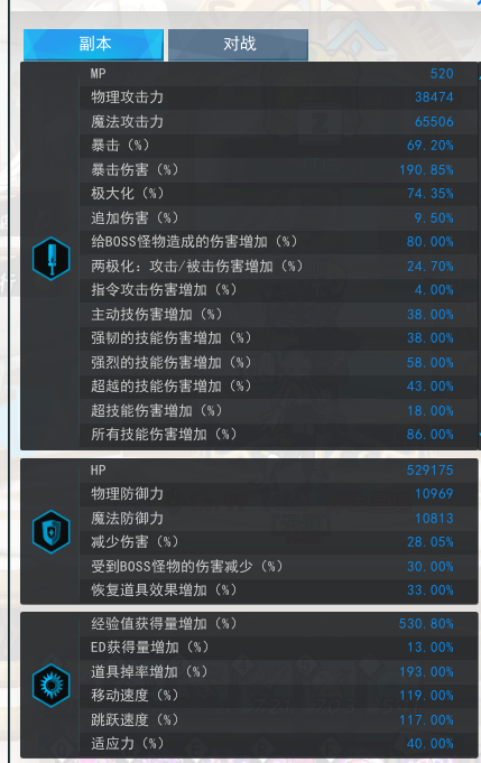 注:如武饰选择暗鬼的纹章,需在防具上赋予属性以达到全属性>1000的触发要求