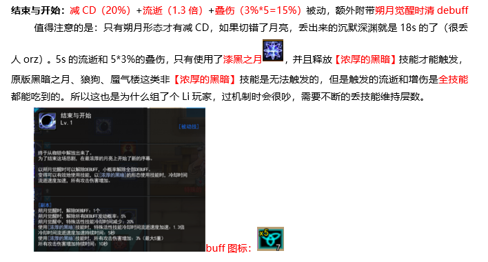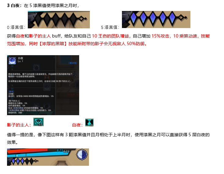 5.断白夜,很多Li玩家碧套连刷主力技能,打上头了就容易断30s的白夜buff,这里推荐每次猴完半月就按一次漆黑之月。(白夜10动速10全队王伤15物攻影子50破技能范围判定增加的加成还是很客观的)