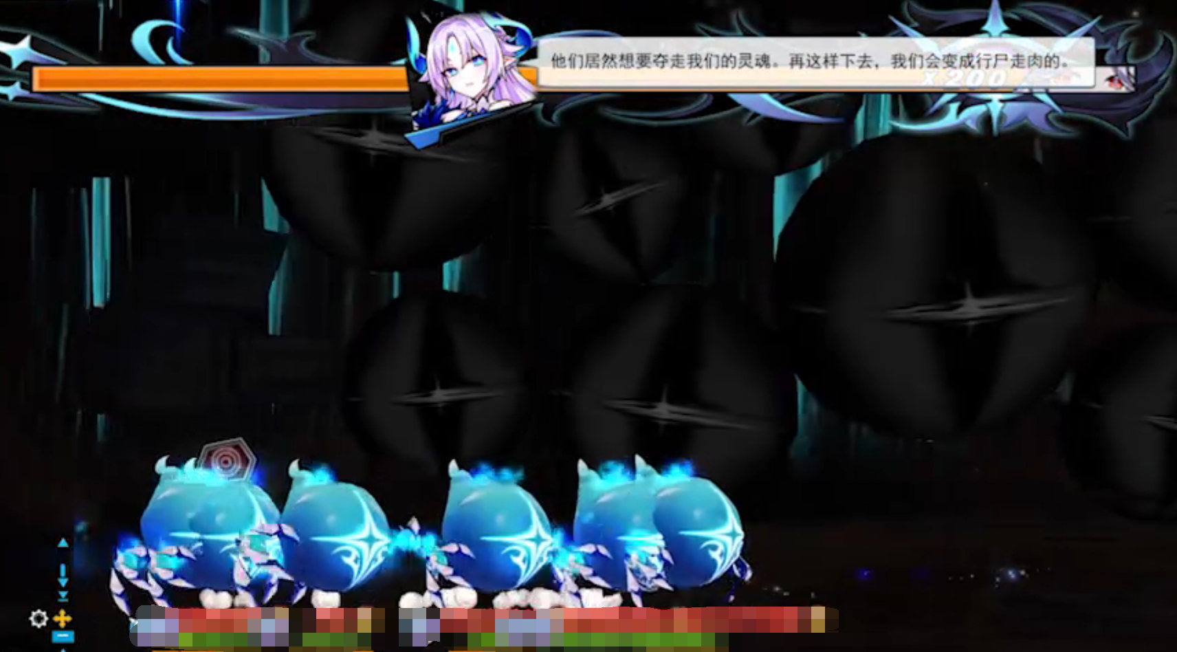 Boss跑掉然后对洞口进行爆冲吞噬,机制开始时会通过背景的指示灯预告吞噬位置。