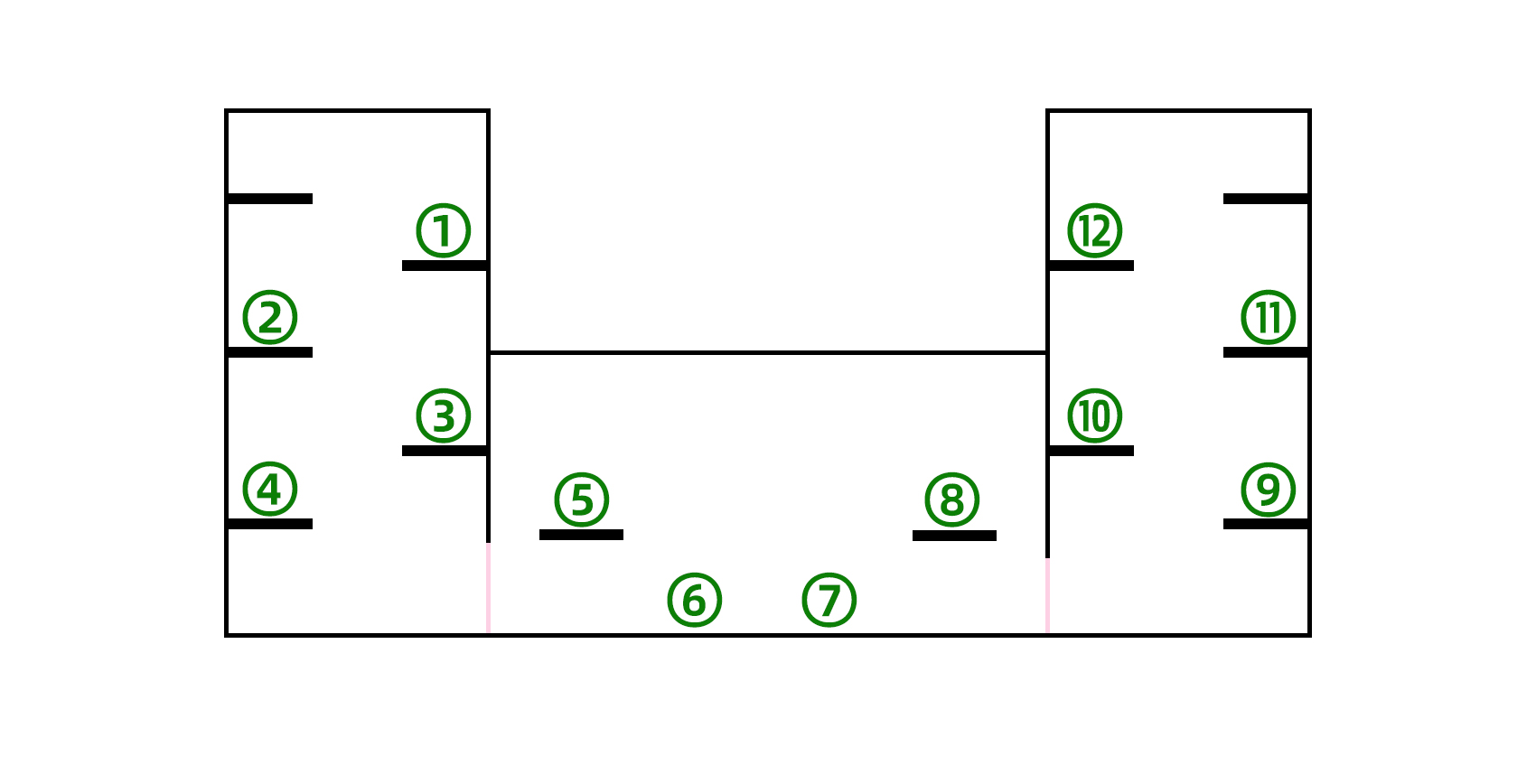 因为梦核的移动轨迹是从右往左,所以序号小的门放在右边,序号大的门放在左边,而且要注意两个门要水平对齐。