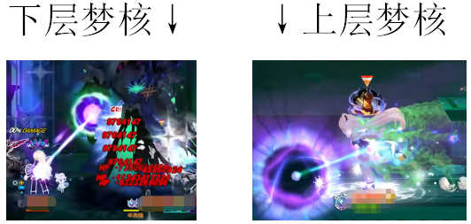 下层的梦核会追踪一个人,不会打到其他人,碰到会叠4层Debuff,可以引梦核撞F1区域消除,没有F1只能强吃。