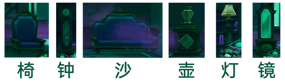 玩家⑤号:灯00钟/壶0镜0/0沙0椅 C