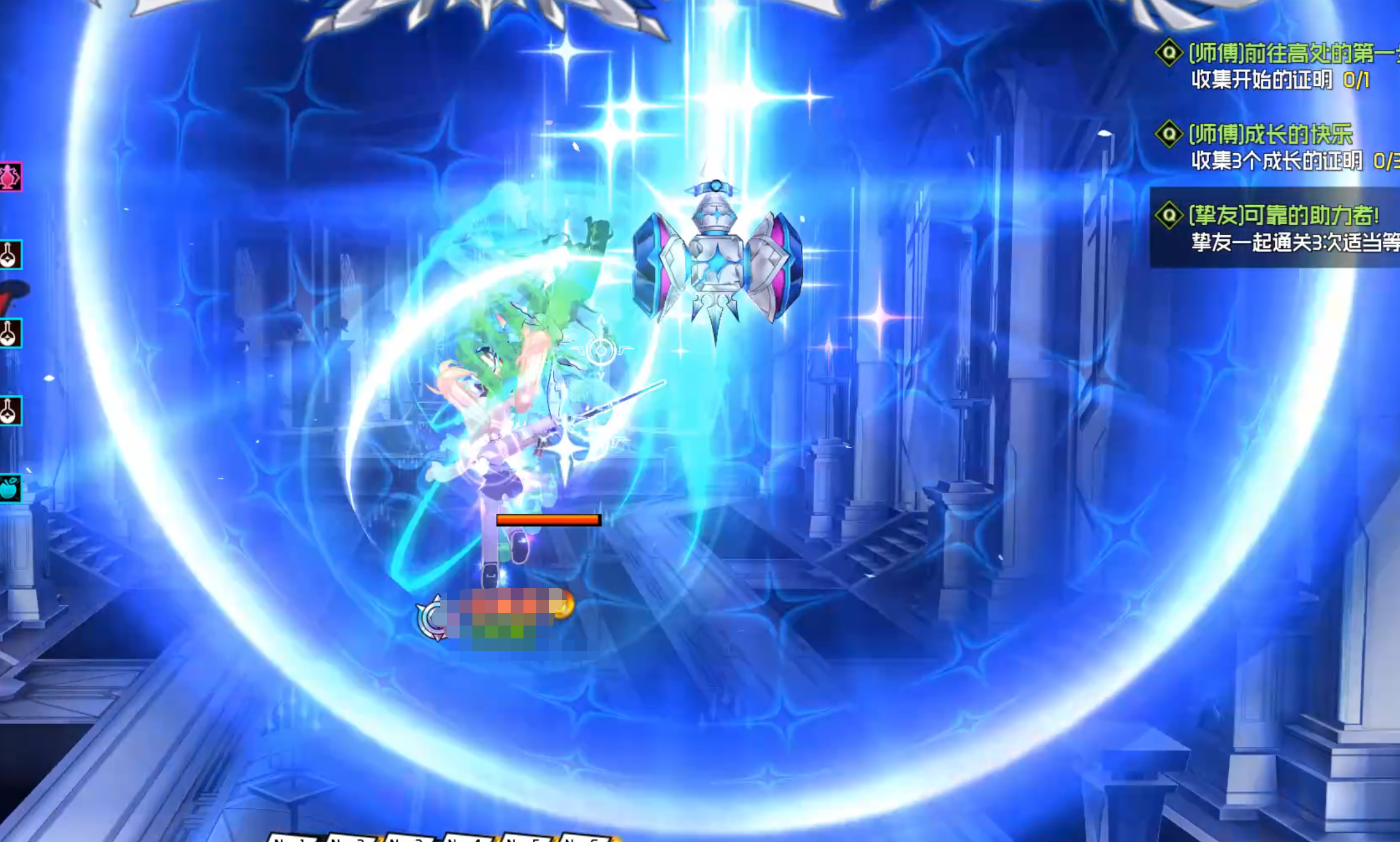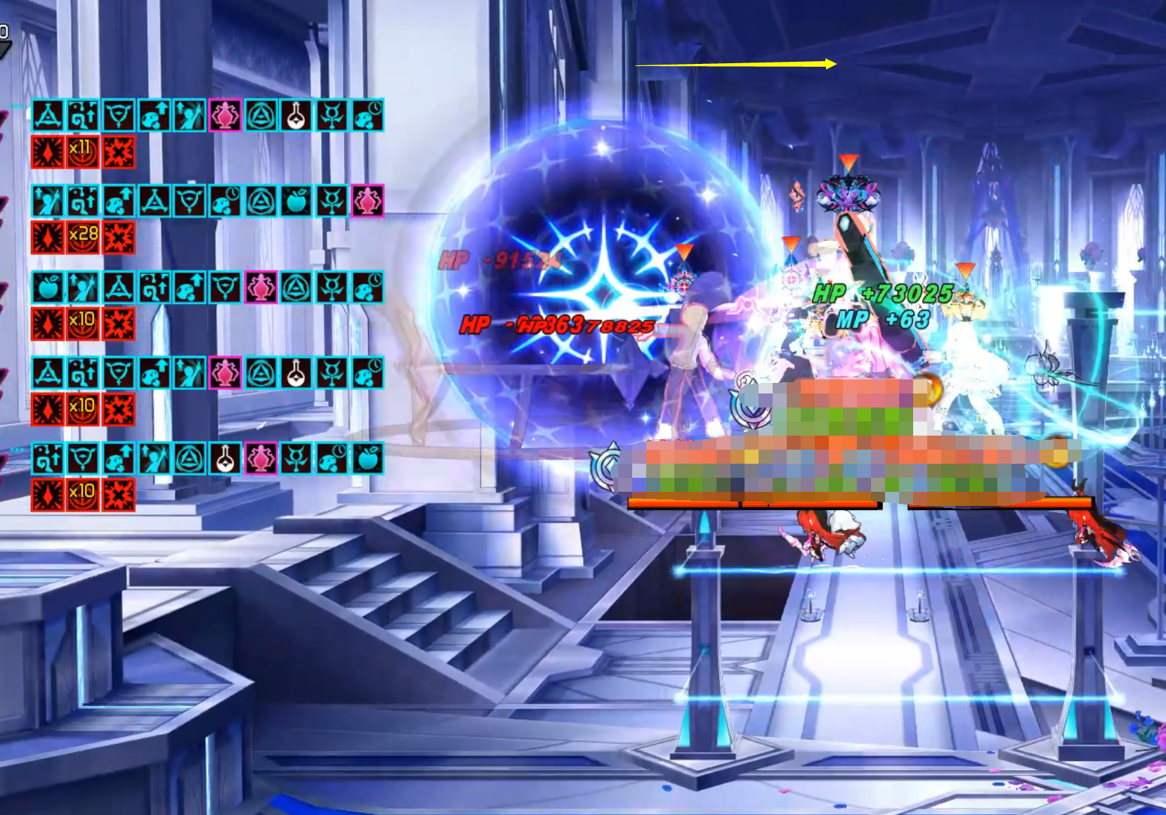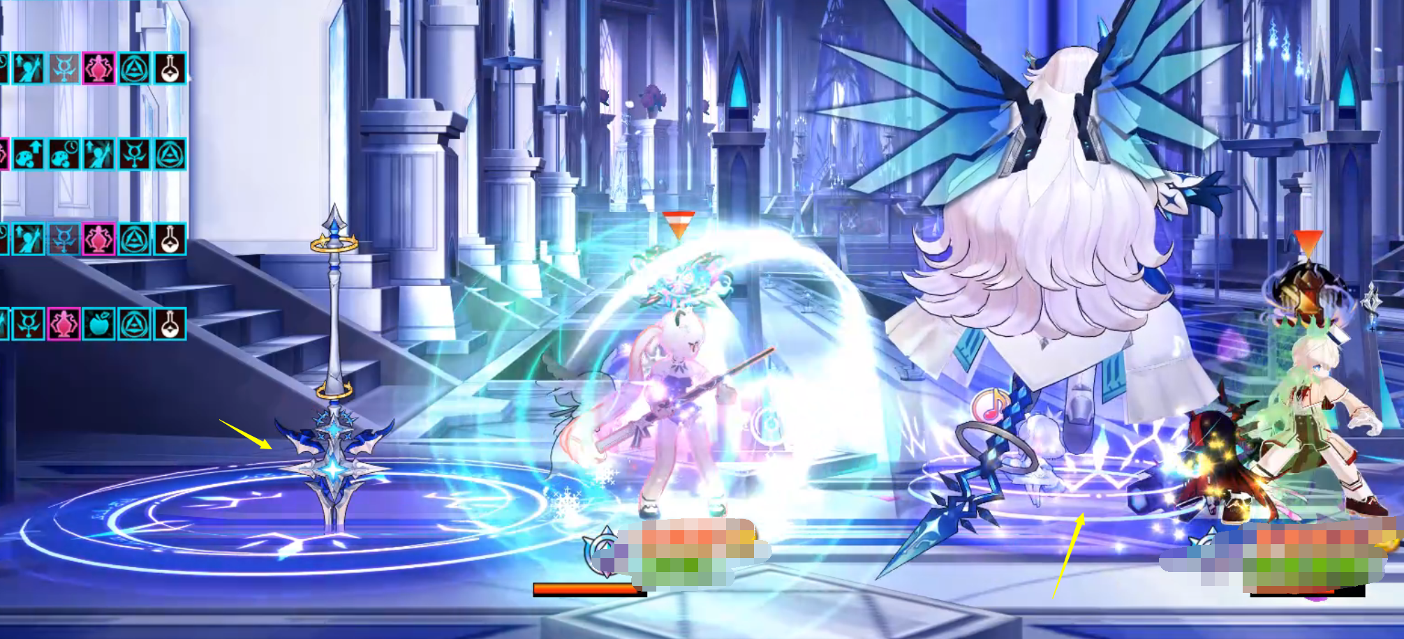 需要用平A打Boss产生蓝紫双色协力球,其中Boss本体掉落紫色球,亚玻伦掉落蓝色球。按F1拾取后,不同颜色的人两两配对站好即可免疫后续的全屏即死伤害。